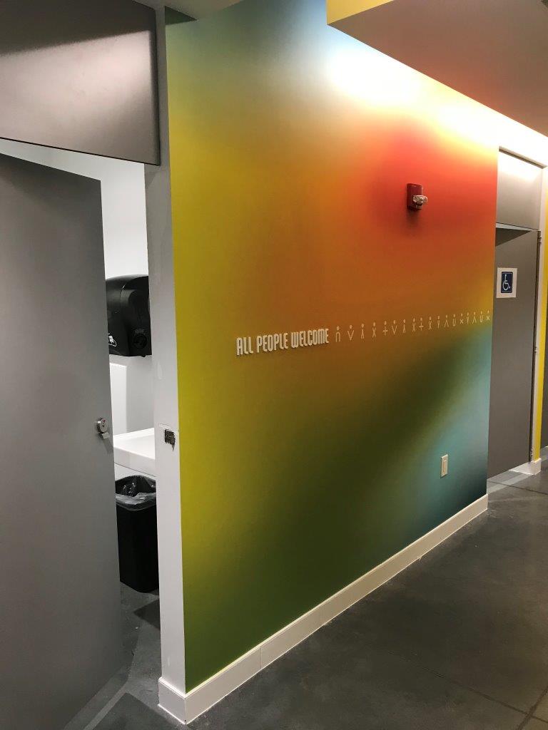 UBC’s Conversation Pit recently went through a renovation to help improve and engage students in conversation. With the help of Public Design and Multigraphics, the 40+ year old building was given a fresh breath of life via wall murals and wallpapers to capture the bliss and positivity of the space. The inspiration of the graphics came from lava lamps, mood rings, unicorns, and everything 70s (when the building was erected). The result has been very positive as seen via students engaging in thread connecting, wallpaper colouring, or Instagram sharing.