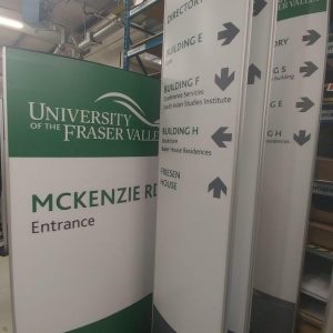 Multigraphics was recently requested to help print and install Identification and Directional signage for UFV at their Abbotsford campus. This is one of those projects where a picture speaks a thousand words. The need was straight-forward, the solution, however, slightly challenging.